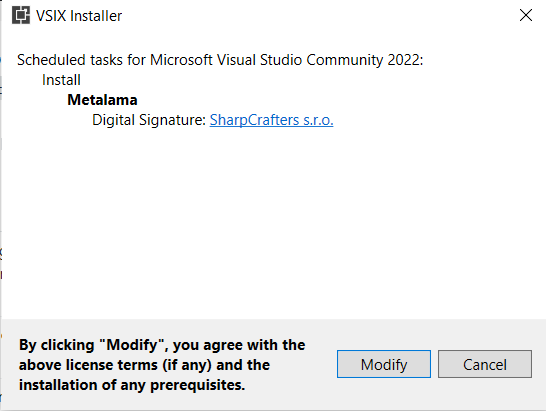 [!INFO] Visual Studio Tools for Metalama require a Metalama Community or Metalama Professional license.